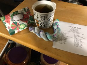 Alright, now, to the important stuff. Today’s tea was Green – Spearmint from Wissotzky Tea. It was quite delightful. It was just a hint of spearmint. It was a lovely post-supper beverage. My sister had Lemon Cake tea and my mom had a Twinings Lapsang Souchong tea. My dad was somewhat dubious of the Lemon Cake tea.