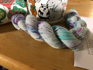 The yarn for today is multi-speckle called Mrs. Claus. It is just scrumptious. I love mini-skeins.
