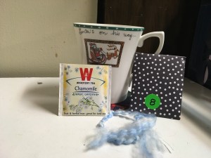Chamomile tea today. I’m saving it for later this evening.. It smells lovely though. My parents had Raspberry tea today, much to my Dad’s relief. They’ve had some, let’s say interesting flavors like Lemon Cake and Pumpkin Spice. Non-traditional flavors to say the least. But we have had fun this last week calling each other to discuss the day’s flavors. It is has helped that it seems we have different teas. Sometimes I get a tea they haven’t had yet and vice verse.