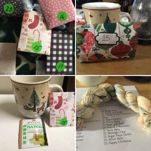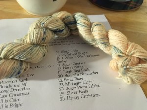 Day 15 yarn (Felicity yarn Studio): Joyful & Bright is a pale yellow/orange with speckles. Really quite lovely.
