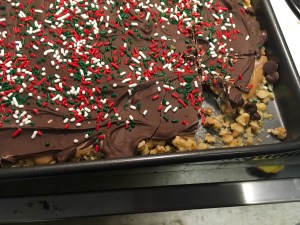 Also, also, I made toffee today. I found a recipe on Pinterest (yes, I know…) a couple of weeks ago and it seemed so easy. It is from Two Sisters Crafting. I made a practice batch that weekend. It turned out wonderful. So I made a second batch today.