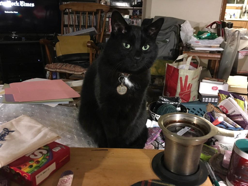Also, Happy Day 15! It’s been such a nice Caturday. We got to sleep in a bit and then enjoy bagels and coffee on the couch. It was lovely. I baked a ham this afternoon. I got it on a whim at the grocery store yesterday. I thought, if I bake it on Saturday it will give us a few meals and sandwiches to get through the next few days until we leave town to visit my family for Christmas. Can I just say yum?! After it came out of the oven and had rested an appropriate amount of time, I sliced a bit just for us to snack on, because it smelled so good and I just couldn’t resist. I carried a little plate into the living room followed by three of the cats. It was funny. They certainly thought they needed some of the ham as well.