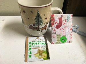 Day 15 tea (Blue Moonstone Designs): Hyley’s Japanese Matcha Tea with Ginger. It is wonderful! It is so pleasant. The ginger present but not overwhelming. I think I may have to find more of this tea.