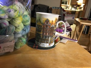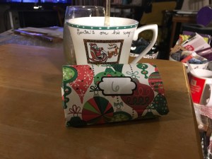 Today’s cup was given to me as a Secret Santa gift when I was in Grad School. (We do not need to say how many years ago that was.) It had a coffee scented candle in it. When the candle was used up, I cleaned it out and started using it for actual coffee. It is such a sweet winter scene on it that every year I think I should leave it out and use it throughout winter. But then I decide to just pack it up and save it for next year.
