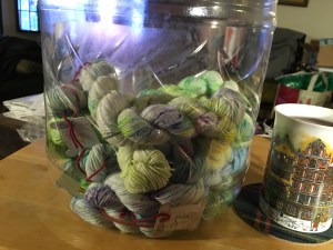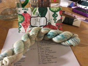 Day 15 yarn (Felicity yarn Studio): Joyful & Bright is a pale yellow/orange with speckles. Really quite lovely.